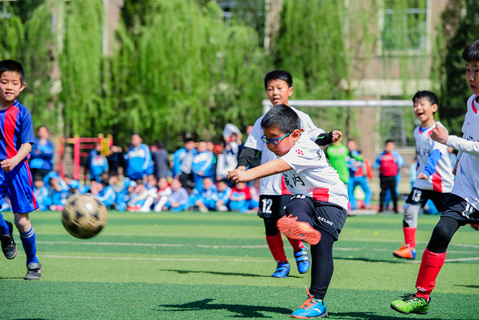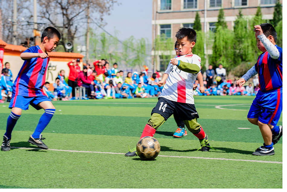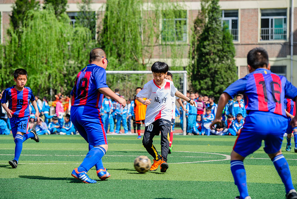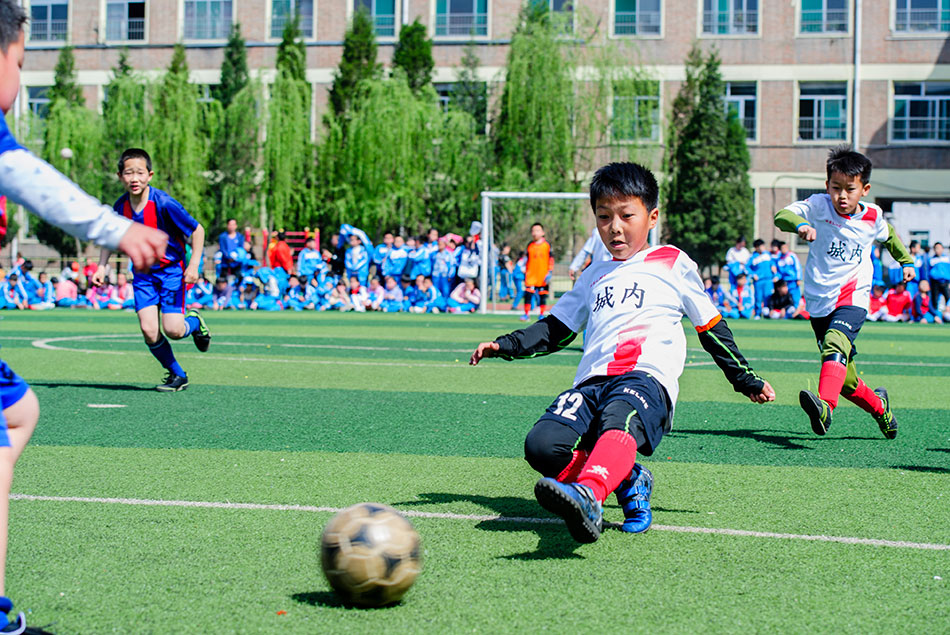 圖為交口中心校學生和城內小學學生正在激烈的比賽中。