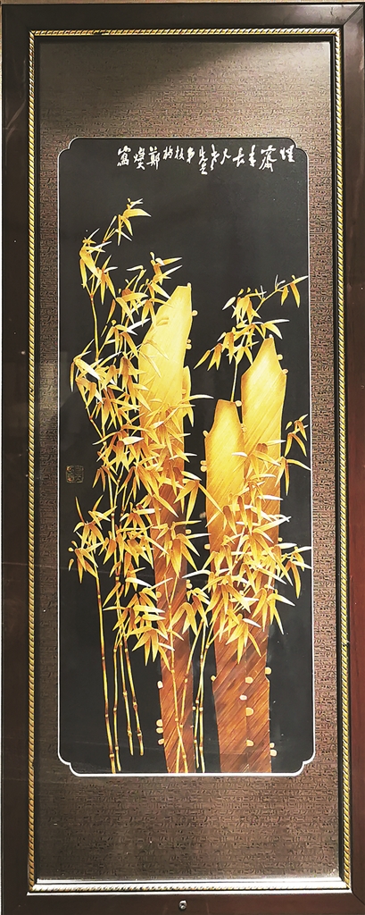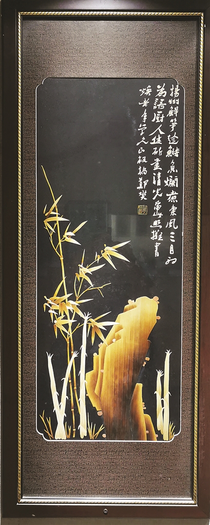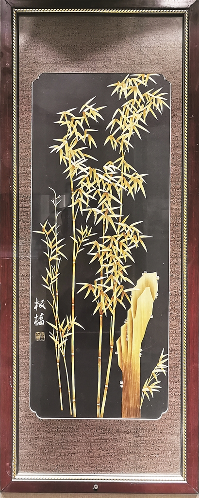 石樓麥稈畫(huà)技藝是以家庭傳承方式傳承至今的,其原料主要是純天然的小麥稈,屬純手工制作。其生產(chǎn)工具主要有烙鐵、烙筆、刮刀、鋼針等。其工藝流程包括:浸泡、晾曬、破稈、平條、貼片、烙色、拓圖、裁剪、拼圖、裝框等。主要產(chǎn)品有各種活靈活現(xiàn)的花、鳥(niǎo)、魚(yú)、蟲(chóng)、廳、臺(tái)、樓、閣、山水、人物等作品。