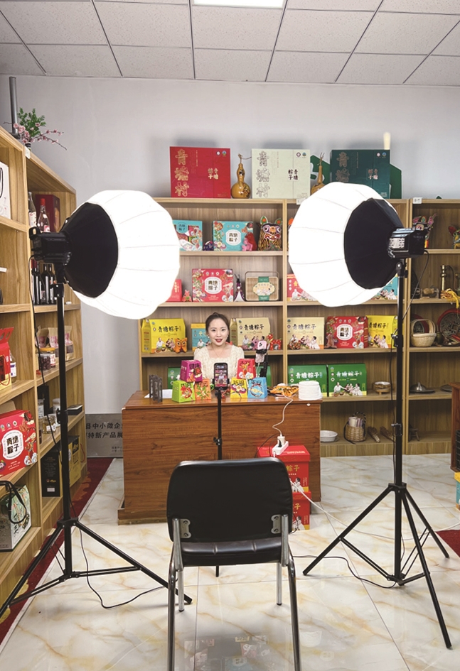 在前段時間的東方甄選直播間,青塘食品有限公司在短短的8分鐘賣出粽子2萬余單,銷售金額130萬元,成功讓青塘粽子火“出圈”。隨著端午節(jié)的臨近,在臨縣電子商務(wù)產(chǎn)業(yè)園區(qū),3個直播間,主播們正同步開展青塘粽子直播活動。據(jù)臨縣電子商務(wù)產(chǎn)業(yè)園區(qū)的工作人員閆旭介紹:“從五月開始,每天直播6個多小時,在他們直播間每天的成交額至少有三四萬,隨著高峰期的到來,有時供不應(yīng)求?!?/p>