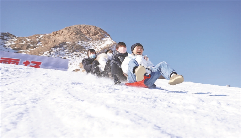 圖⑦甘肅張掖,游客享受冰雪樂趣。