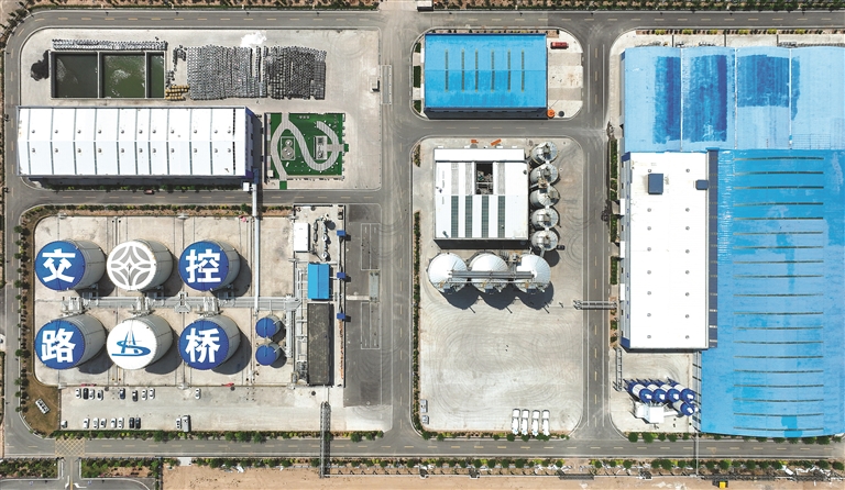 “我們園區(qū)位于文水縣經(jīng)濟(jì)開(kāi)發(fā)區(qū),地處太原、晉中、呂梁三市的‘黃金交會(huì)點(diǎn)’,周邊電廠(chǎng)、鋼鐵廠(chǎng)等產(chǎn)廢企業(yè)眾多,煤矸石、粉煤灰、鐵尾礦、鋼渣等大宗工業(yè)固廢產(chǎn)量較大,但是利用率較低,大部分以堆存為主?!睋?jù)介紹,在這樣的大環(huán)境下,2020年4月山西路橋再生資源開(kāi)發(fā)有限公司成立。此后,聚焦固廢資源利用、綠色低碳發(fā)展,立足交通領(lǐng)域,投資建設(shè)了交通科技園,按照“固廢資源利用,綠色低碳發(fā)展”理念,分二期建設(shè)。一期項(xiàng)目聚焦“生態(tài)構(gòu)件、建筑3D打印、鎂基聲屏障、高性能摻合料、生態(tài)水泥、高品類(lèi)橡膠瀝青再生膠粒、瀝青制品”七大業(yè)態(tài),利用鋼渣、CFB灰渣、粉煤灰等固廢,采用多固廢復(fù)合、蒸汽脫硫、3D打印等技術(shù),生產(chǎn)路橋生態(tài)水泥、再生膠粒、高性能摻合料等系列工業(yè)固廢產(chǎn)品。截至目前,一期各業(yè)態(tài)均已全面投產(chǎn),2024年處理固廢130萬(wàn)噸,產(chǎn)值1.4億元。這種“廢料重生”的循環(huán)模式,實(shí)現(xiàn)了工業(yè)固廢的資源化、規(guī)模化利用,就仿佛土壤中的腐殖質(zhì)轉(zhuǎn)化為養(yǎng)分,催發(fā)綠色基建的蓬勃發(fā)展。