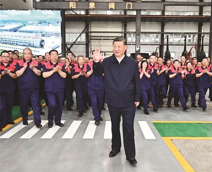 當(dāng)天下午,習(xí)近平到陽泉閥門股份有限公司進(jìn)行了考察。在聽取近年來山西省產(chǎn)業(yè)轉(zhuǎn)型升級(jí)情況匯報(bào)后,他走進(jìn)企業(yè)生產(chǎn)車間,詳細(xì)了解煤氣閘閥、電動(dòng)翻板閥等產(chǎn)品生產(chǎn)和銷售情況。他指出,傳統(tǒng)制造業(yè)是實(shí)體經(jīng)濟(jì)的重要組成部分,要把握市場需求,加強(qiáng)科技創(chuàng)新,讓傳統(tǒng)產(chǎn)業(yè)煥發(fā)新活力。他對(duì)企業(yè)員工們說,我國的工業(yè)發(fā)展,過去是靠一榔頭一錘子地敲,今天要靠先進(jìn)技術(shù)和裝備來提升水平。實(shí)業(yè)興國,實(shí)干興邦。希望你們再接再厲、更上層樓,為建設(shè)制造強(qiáng)國多作貢獻(xiàn)。