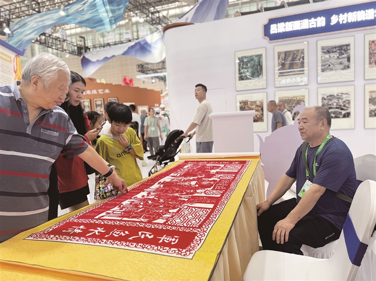 “這次帶兩幅作品來文博會,就是想讓更多人知道,傳統(tǒng)剪紙技藝不只是剪花鳥、刻紋樣,還能以絨布為載體,承載讓人熱淚盈眶的紅色故事?!笨粗骨榜v足的游客,尤其是年輕人們認(rèn)真聽講解、拍照記錄的樣子,讓成栓亮很感動,他說,“我最大的心愿就是能為這些作品辦一次專屬展覽,希望能把這些紅色記憶刻得更細(xì)、傳得更遠(yuǎn),讓更多人從這些作品里讀懂歷史,不忘初心?!?/p>
