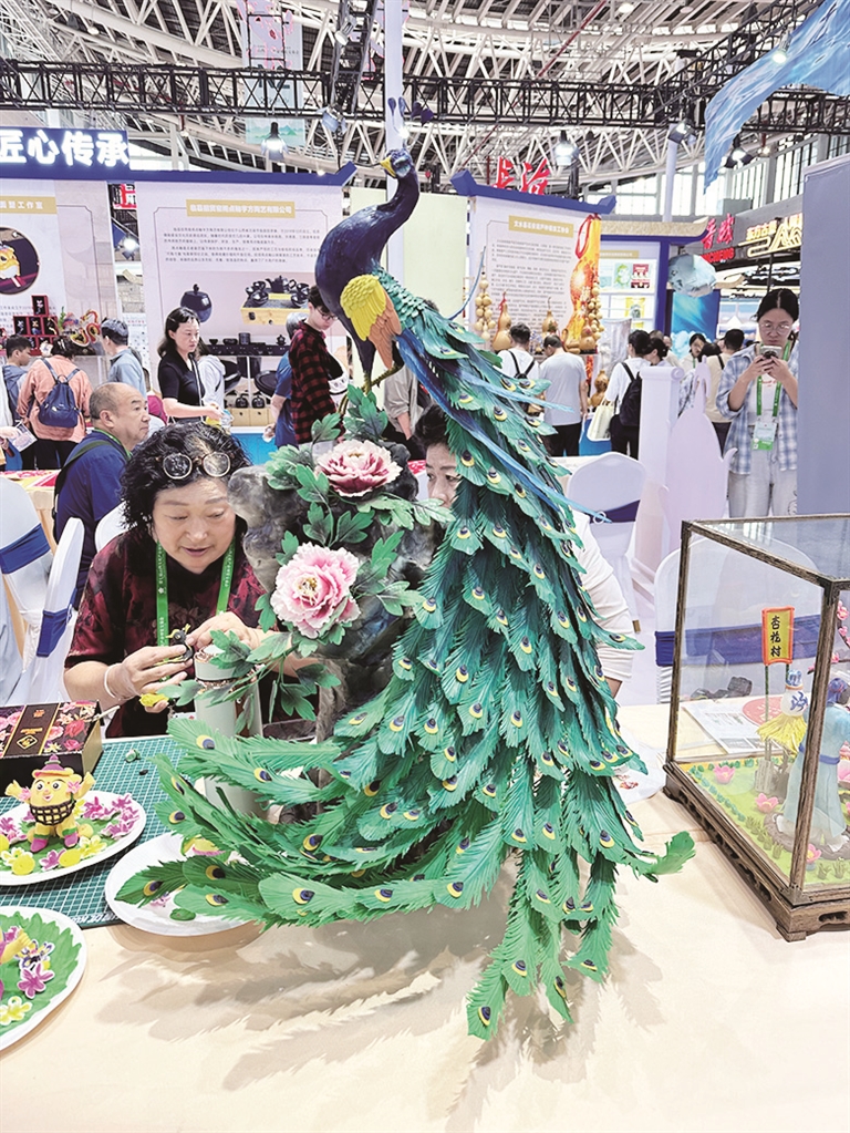 近日,第七屆山西文化產(chǎn)業(yè)博覽交易會熱鬧非凡。在呂梁展區(qū),嵐縣面塑以精巧造型呈現(xiàn),色彩艷麗的孔雀、栩栩如生的花卉,將面團化為藝術,活態(tài)傳承盡顯匠心,展現(xiàn)了呂梁非遺的獨特韻味與深厚底蘊。