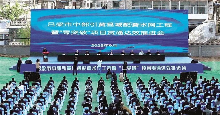 圖為呂梁市中部引黃縣域配套水網(wǎng)工程暨“零突破”項目貫通達(dá)效推進(jìn)會現(xiàn)場。 記者 王益煒 攝