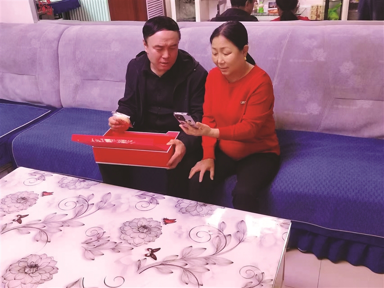 圖⑤為任艷紅打開(kāi)手機(jī)在電商平臺(tái)挑選中秋禮盒。 王濤 攝