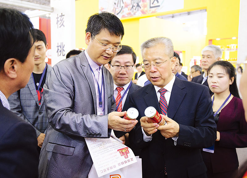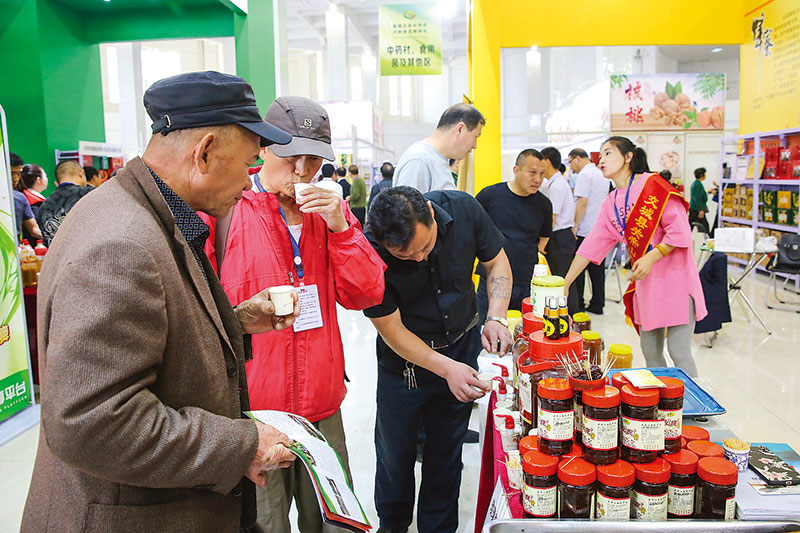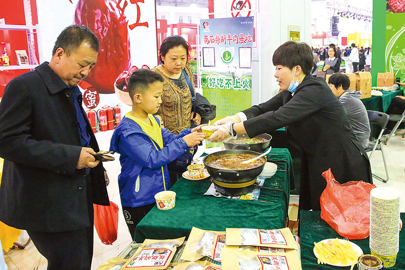 參展企業(yè)為游客提供特色產(chǎn)品品嘗服務(wù)。