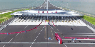 完成了出境大廳的通關(guān)手續(xù)之后,穿過港珠澳大橋收費站,就正式進(jìn)入了大橋主體部分。這是港珠澳大橋唯一一座收費站,去往香港方向先收費,而由香港過來的車后收費。