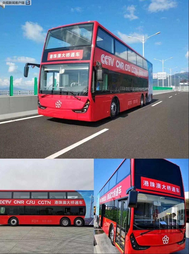2018年10月23日,港珠澳大橋正式開通!中央廣播電視總臺的雙層巴士,成為行駛在港珠澳大橋上的第一輛大巴車。
