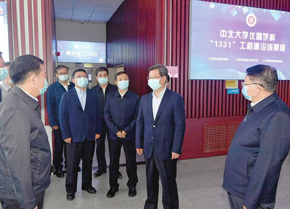 習(xí)近平總書(shū)記視察時(shí)對(duì)我省轉(zhuǎn)型發(fā)展給予充分肯定,希望山西在轉(zhuǎn)型發(fā)展上率先蹚出一條新路來(lái)。近年來(lái),中北大學(xué)深入實(shí)施“1331工程”,在重點(diǎn)學(xué)科、重點(diǎn)實(shí)驗(yàn)室、重點(diǎn)創(chuàng)新團(tuán)隊(duì)建設(shè)方面取得積極成效。樓陽(yáng)生聽(tīng)取中北大學(xué)“1331工程”儀器科學(xué)與技術(shù)一流學(xué)科建設(shè)、重點(diǎn)實(shí)驗(yàn)室、創(chuàng)新團(tuán)隊(duì)、科研項(xiàng)目介紹,詢(xún)問(wèn)科研人才合作和成果轉(zhuǎn)化情況,希望進(jìn)一步打通產(chǎn)學(xué)研,把領(lǐng)先技術(shù)優(yōu)勢(shì)轉(zhuǎn)化為產(chǎn)業(yè)優(yōu)勢(shì)。得知該校與知名信創(chuàng)企業(yè)合作,建立人才培養(yǎng)聯(lián)合基地,要求加快項(xiàng)目落地,讓產(chǎn)業(yè)有科研支撐,科研有用武之地,人才有發(fā)展平臺(tái)。山西省高分子復(fù)合材料工程技術(shù)研究中心是“1331工程”重點(diǎn)實(shí)驗(yàn)室,樓陽(yáng)生認(rèn)真察看生物降解納米有機(jī)肥和石墨烯改性輪胎橡膠復(fù)合材料、重防腐涂料等創(chuàng)新成果展示,指出,材料是裝備制造業(yè)的基石,要立足科技前沿,加強(qiáng)“卡脖子”技術(shù)研發(fā),為轉(zhuǎn)型發(fā)展作貢獻(xiàn)。中北大學(xué)前沿交叉科學(xué)研究院依托優(yōu)勢(shì)學(xué)科、堅(jiān)持需求導(dǎo)向,組建跨學(xué)院、跨學(xué)科、跨校際科研團(tuán)隊(duì),開(kāi)展前瞻研究。樓陽(yáng)生了解射頻濾波器、溫度傳感器、智能感知微系統(tǒng)等研發(fā)情況、應(yīng)用前景,與團(tuán)隊(duì)負(fù)責(zé)人親切交流,強(qiáng)調(diào)要加大科研支持力度,優(yōu)化創(chuàng)新資源配置,強(qiáng)化對(duì)接服務(wù)保障,加快科技成果就地轉(zhuǎn)化。樓陽(yáng)生充分肯定中北大學(xué)在科技創(chuàng)新方面的努力和成效,勉勵(lì)中北大學(xué)聚焦“六新”,瞄準(zhǔn)前沿,勇攀高峰,加快向“雙一流”大學(xué)目標(biāo)邁進(jìn)。