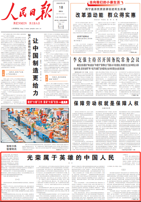 來源:《人民日?qǐng)?bào)》(2020年09月18日第01版),原題:《光榮屬于英雄的中國(guó)人民》