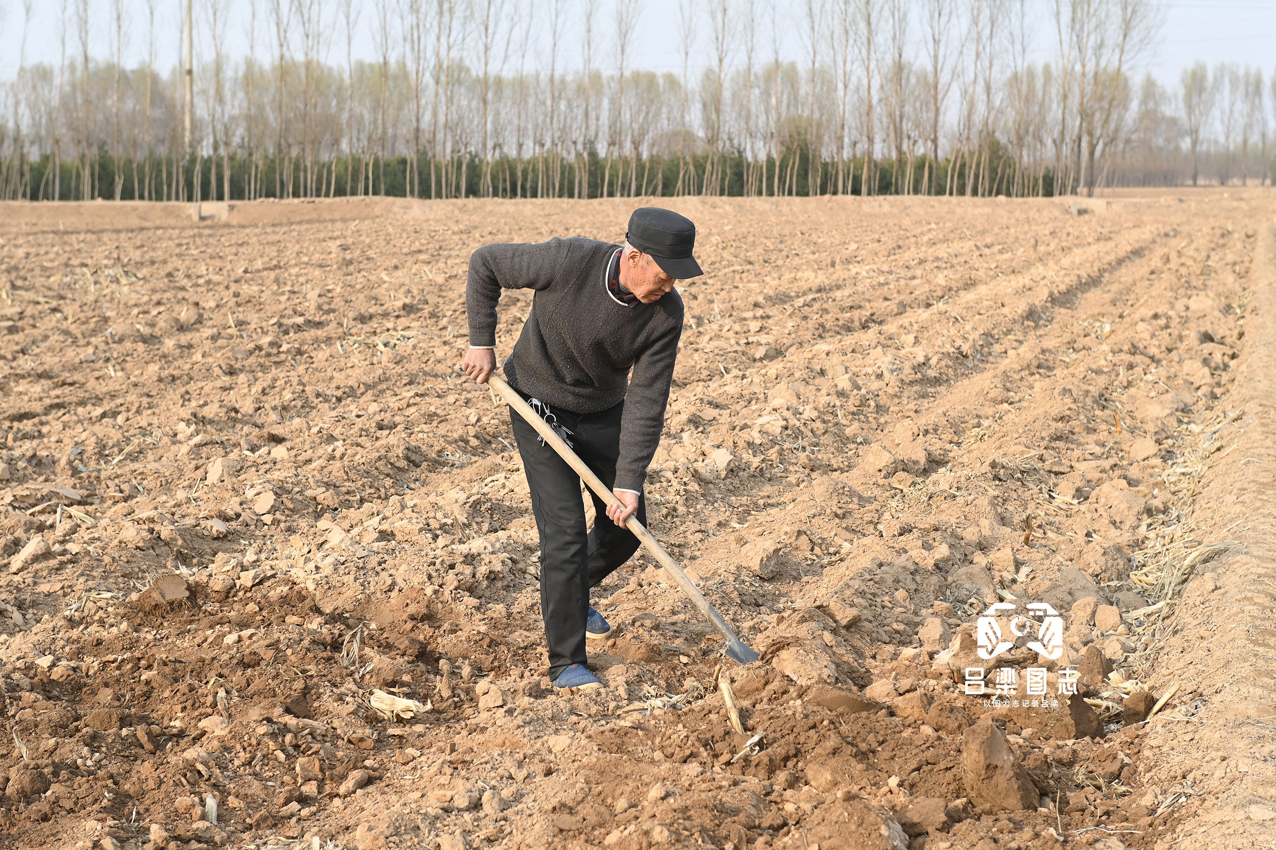 汾陽市農民正打地壟,為節(jié)水春澆做準備。