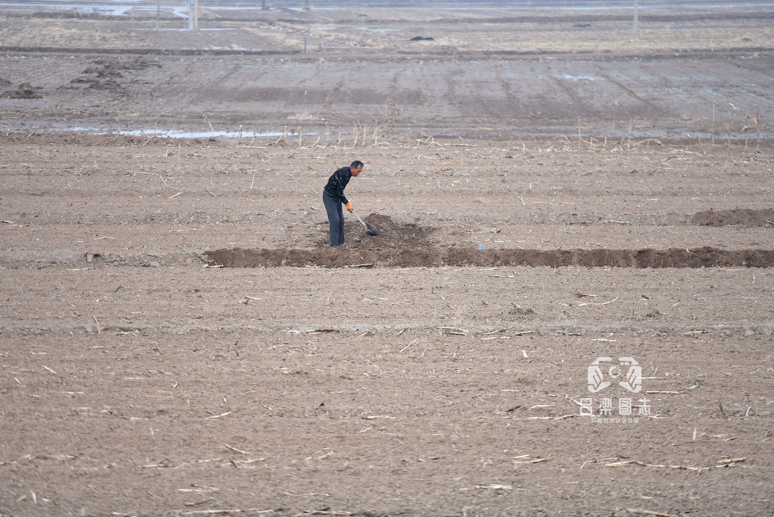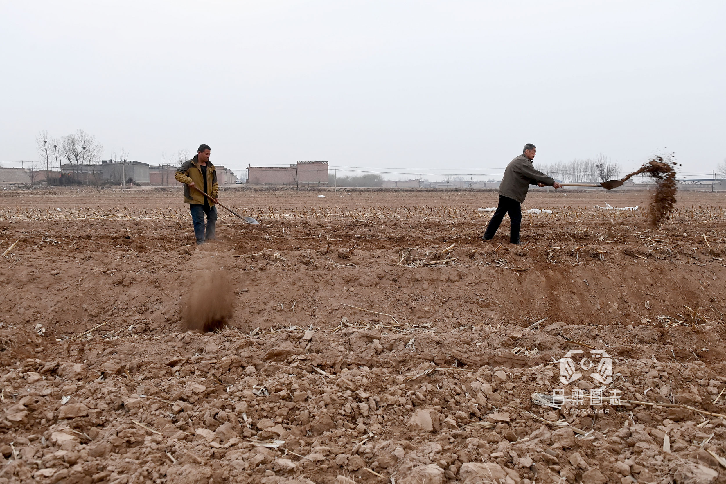 文水縣農民正在翻地。