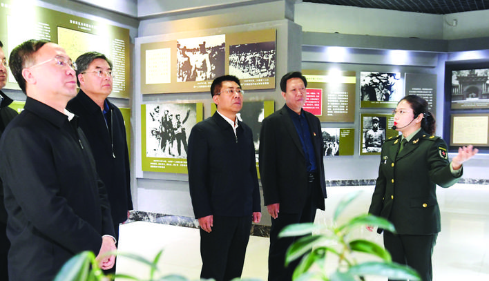 坐落在興縣蔡家崖村的晉綏邊區(qū)革命紀念館,是全國重點文物保護單位、全國愛國主義教育示范基地。孫大軍一行懷著崇敬的心情,參觀晉綏邊區(qū)革命紀念館,瞻仰晉綏軍區(qū)司令部舊址,深切緬懷革命先輩,深情回顧革命戰(zhàn)爭年代呂梁兒女踴躍支前、投身革命的光輝歷史,重溫習(xí)近平總書記的殷殷囑托。他指出,呂梁精神是我們黨寶貴的精神財富,是呂梁兒女在戰(zhàn)爭年代用鮮血和生命鑄就的偉大精神,是呂梁人民心中永不褪色的精神豐碑,激勵呂梁老區(qū)取得了革命、建設(shè)和改革的顯著成就,特別是取得了消除絕對貧困的歷史性勝利,也必然是新發(fā)展階段呂梁轉(zhuǎn)型發(fā)展蹚新路的強大精神動力。我們要始終牢記習(xí)總書記的殷切囑托,在開啟全面建設(shè)社會主義現(xiàn)代化國家的新征程中大力弘揚呂梁精神,特別是在黨史學(xué)習(xí)教育中,要著力把我市的紅色資源利用好、紅色傳統(tǒng)發(fā)揚好、紅色基因傳承好,用呂梁精神筑牢呂梁之魂,激勵廣大黨員干部在轉(zhuǎn)型發(fā)展、鄉(xiāng)村振興、生態(tài)建設(shè)和民生改善中艱苦奮斗、攻堅克難,敢于擔(dān)當、勇于創(chuàng)新,堅韌不拔、久久為功,持續(xù)打造風(fēng)清氣正的政治生態(tài)和社會生態(tài),為建設(shè)美麗幸福呂梁而頑強奮斗。