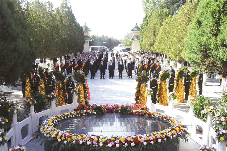 呂梁各界向烈士紀(jì)念碑敬獻(xiàn)花籃