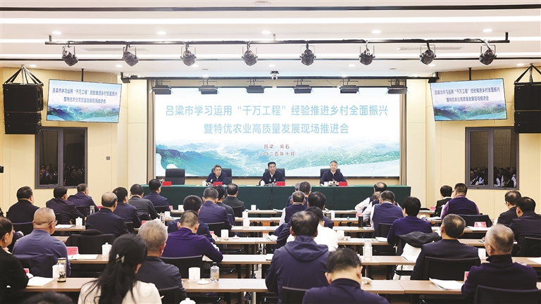 本報訊 (記者 李雅萍) 10月14日,我市召開學習運用“千萬工程”經(jīng)驗推進鄉(xiāng)村全面振興暨特優(yōu)農(nóng)業(yè)高質(zhì)量發(fā)展現(xiàn)場推進會,傳達貫徹省委書記唐登杰呂梁調(diào)研指示精神,總結(jié)鄉(xiāng)村旅游重點村建設(shè)成效,部署推進鄉(xiāng)村建設(shè)、鞏固銜接、特優(yōu)農(nóng)業(yè)、土地整治、秋收秋種等工作。市委書記孫大軍講話。市委副書記、市長熊義志主持。市領(lǐng)導(dǎo)張利鋒、田安平、張子梁、劉繼隆、劉世慶、龐明明、薛愛平出席。